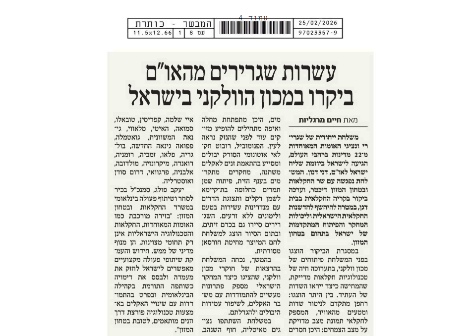 עשרות שגרירים מהאו"ם ביקרו במכון וולקני בישראל פתיחה בחלון חדש