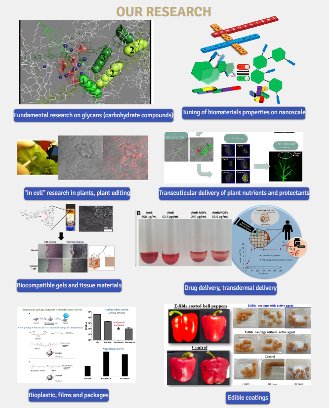 Our laboratory operates at the interface of materials science, biopolymers and biology. Our goal is to introduce advanced approaches from materials chemistry and polymer science into food science, plant research, biomedicine, and agriculture. Our core expertise lies in carbohydrates, polysaccharides, and saccharide-bearing materials (glycosides). The research in our lab is grounded in the rational design of advanced glycoside materials with broad scientific and practical applications.